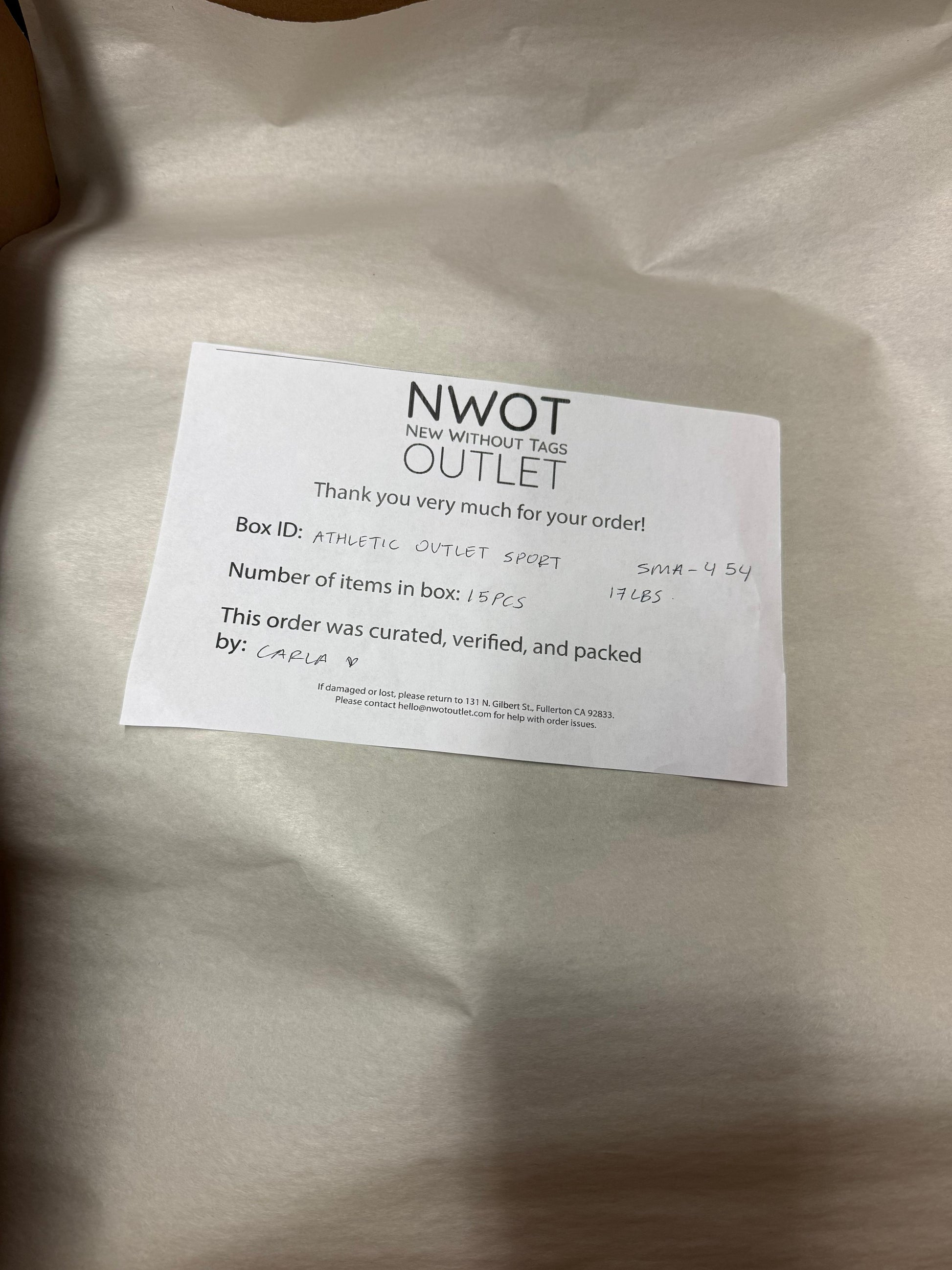 Athletic Outlet Sport | Assorted Athletic Apparel | 15 Pieces | Small Box #SMA-454
