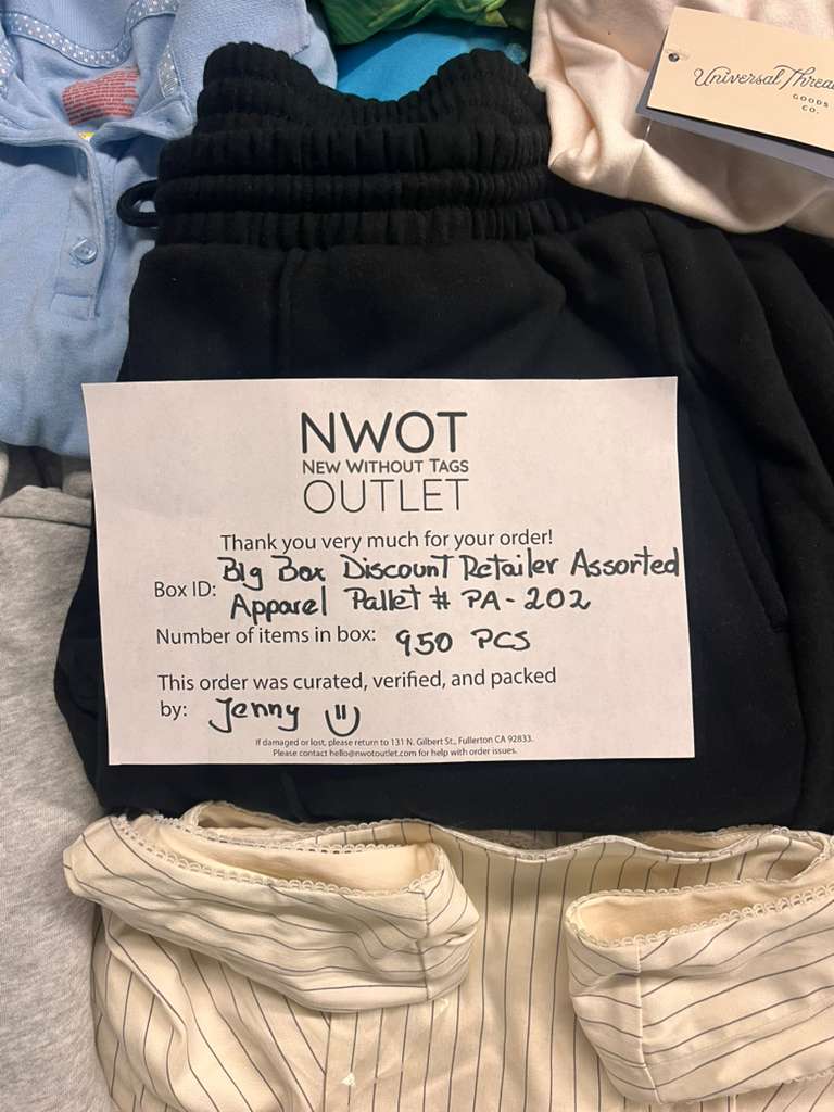 Product description: Big Box Discount Retailer assorted apparel pallets