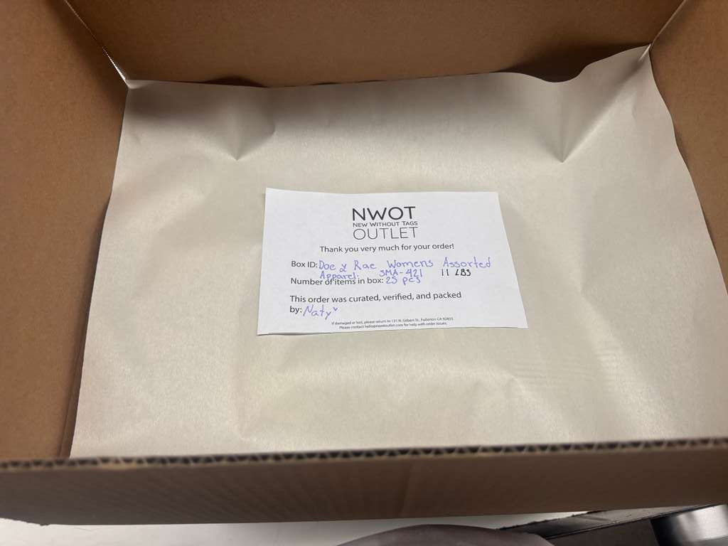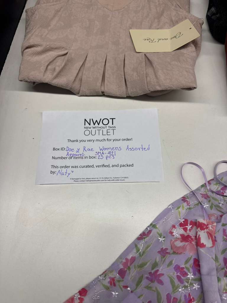 Styles: Includes 25 assorted pieces of women’s apparel from Doe & Rae. Expect a variety of stylish, on-trend designs, perfect for resellers or boutiques looking to add fashionable and versatile women’s clothing to their inventory.