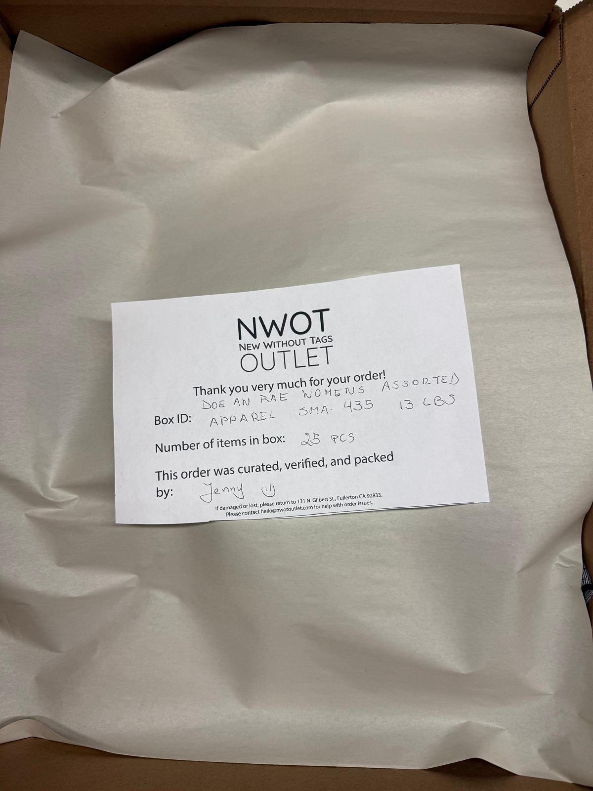 Doe And Rae | Women Assorted Apparel | 25 Pieces | Small Box# SMA-435