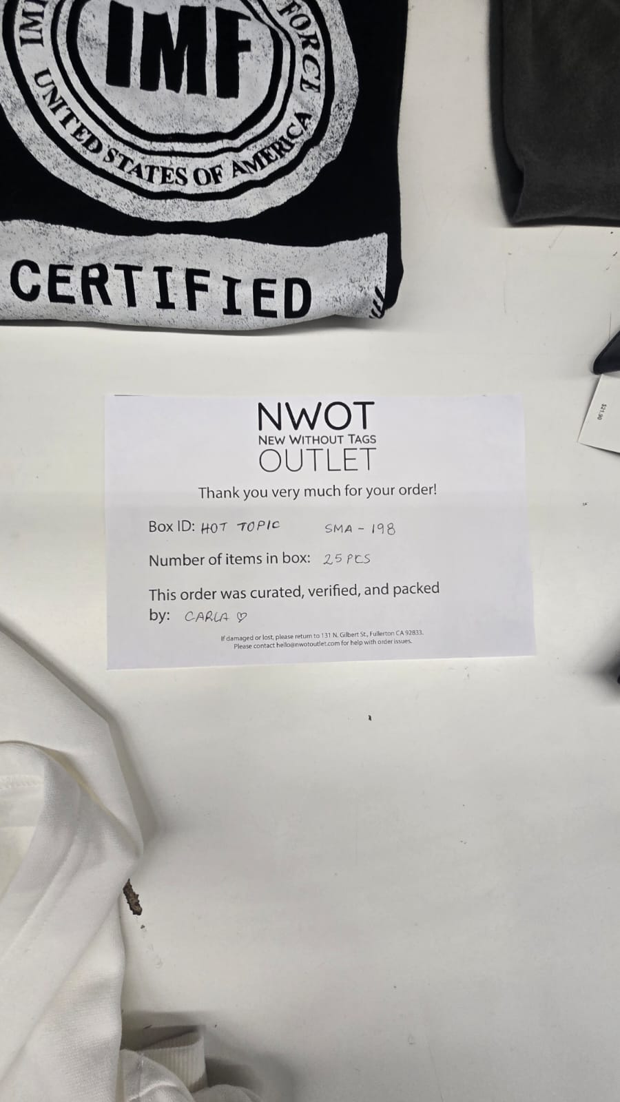 Hot Topic | Assorted Apparel and Accessories | 25 Pieces | Small Box# SMA-198