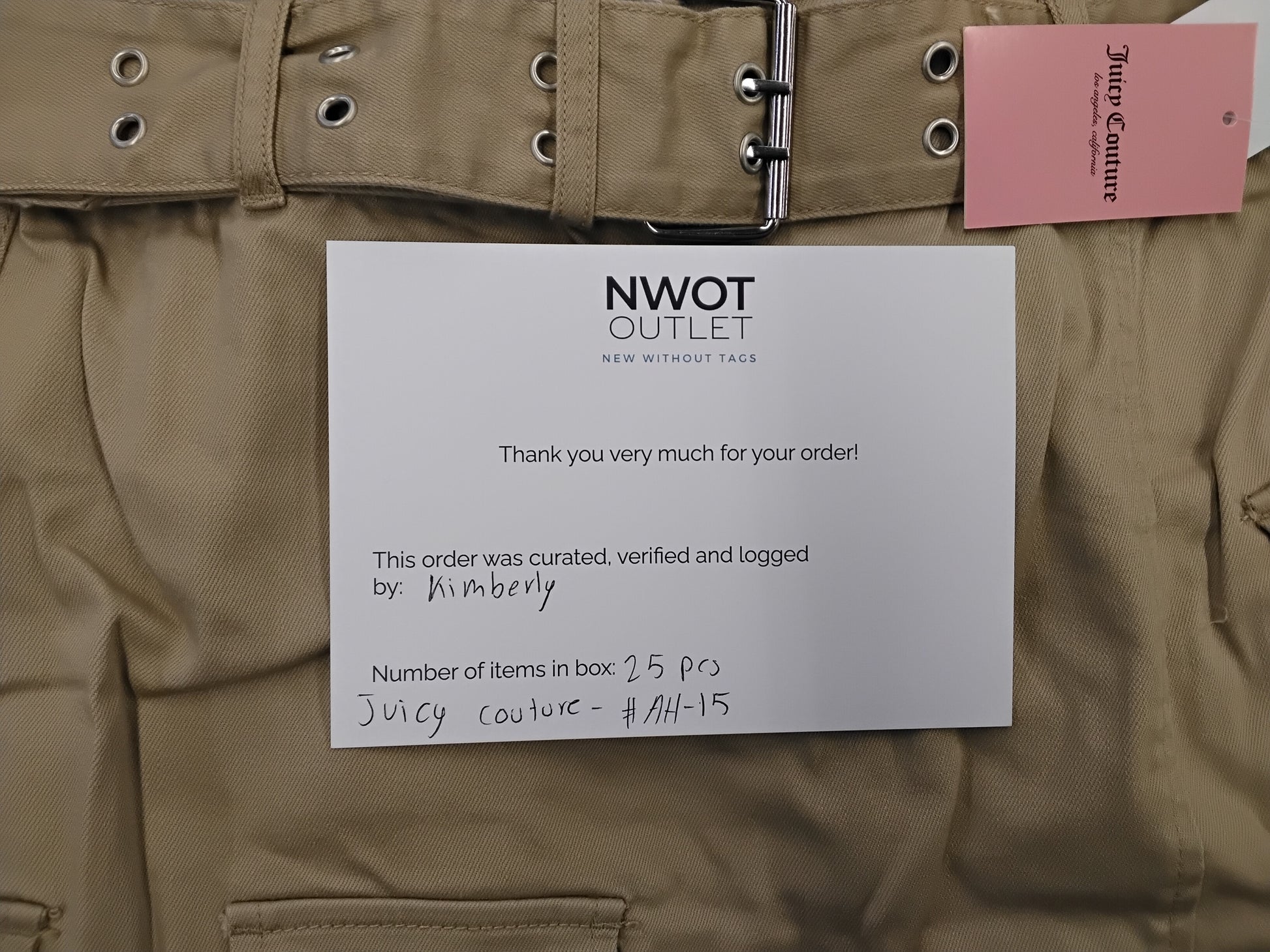 - Product description: BRANDED BOX! Enjoy 25 pieces of new-with-tag "Juicy Couture" branded apparel. Assorted women's apparel from Luxury Fashion Retailer.
