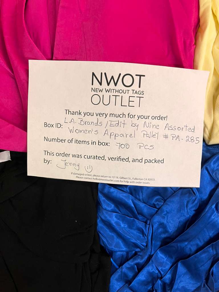 Product description: LA Brands x “Edit by Nine” | 700-Piece Assorted Women’s Apparel – NWOT Wholesale Lot