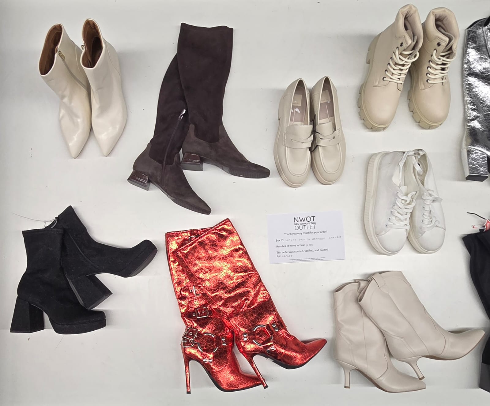Styles: Elevate your inventory with this Luxury Fashion retailer assortment of foorwear. This Small Box includes 12 pairs of high-quality, stylish footwear suitable for various seasons and fashion preferences. Perfect for resellers, boutiques, and online stores looking to offer durable, in-demand boot styles across multiple brands and designs.