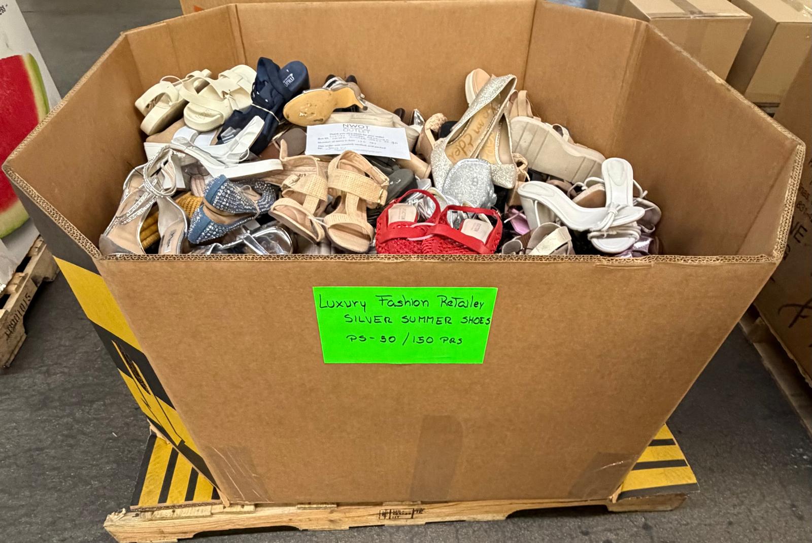 Styles: Step into elevated summer style with this luxury fashion retailer silver summer shoes wholesale pallet. This premium lot includes 150 pairs of sleek, on-trend silver footwear designed for warm-weather wear. Ideal for boutiques, online resellers, and fashion retailers looking to offer statement pieces with high resale potential.